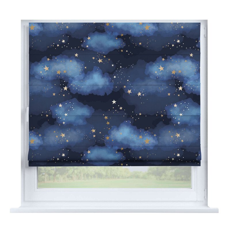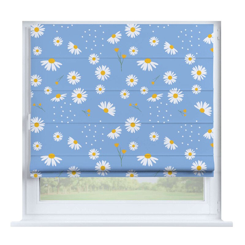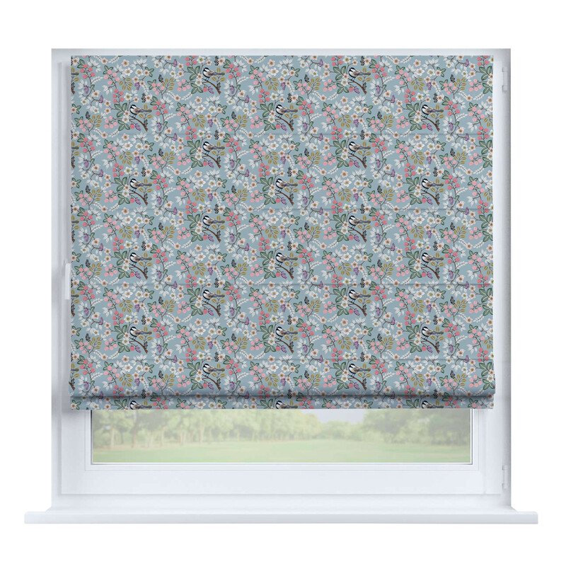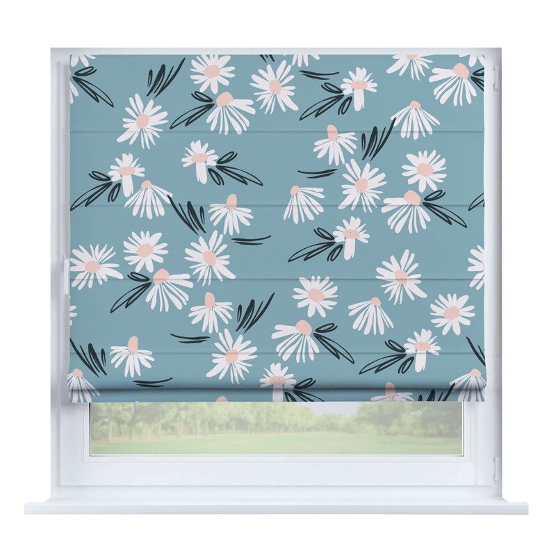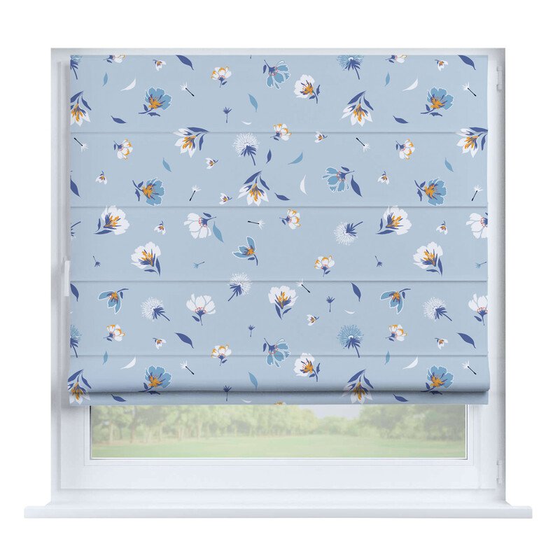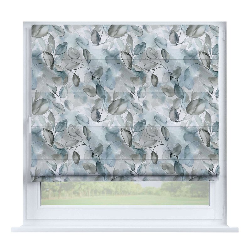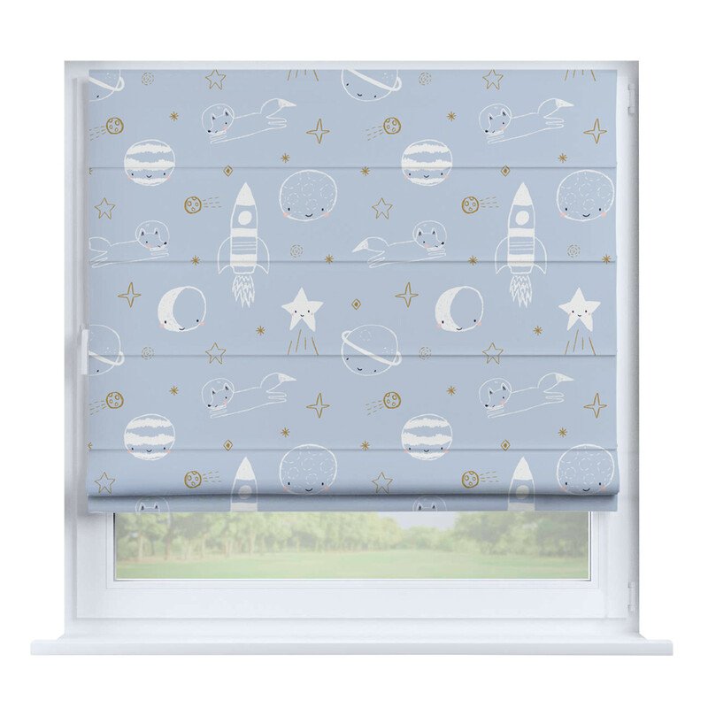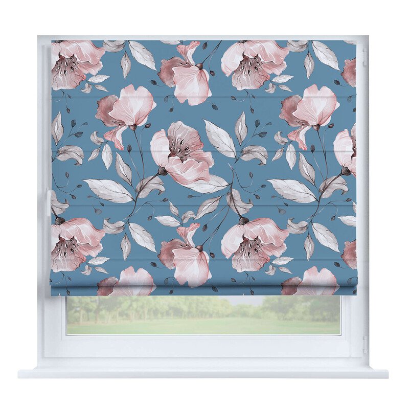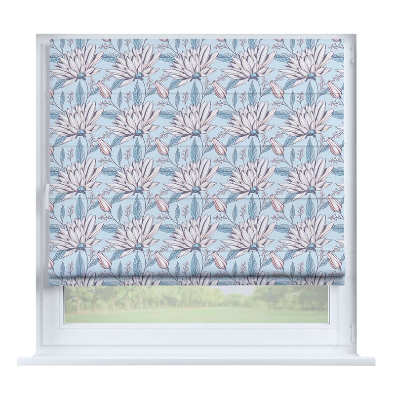 Французская штора лён кашемир голубой, карниз верёвочный