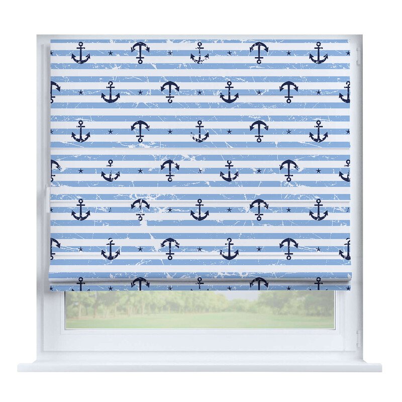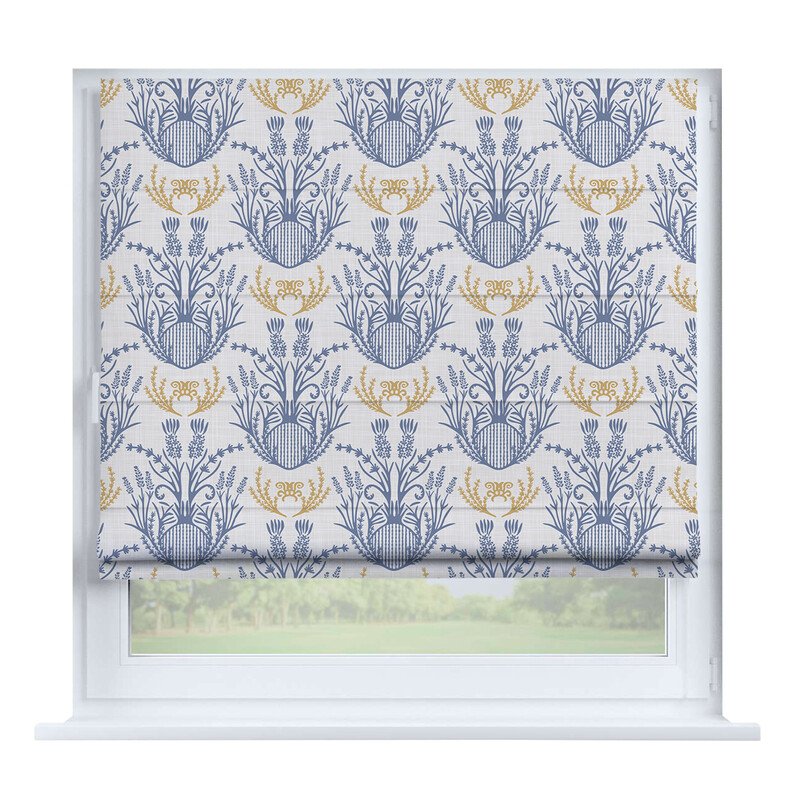 Французская штора лён голубой, карниз верёвочный