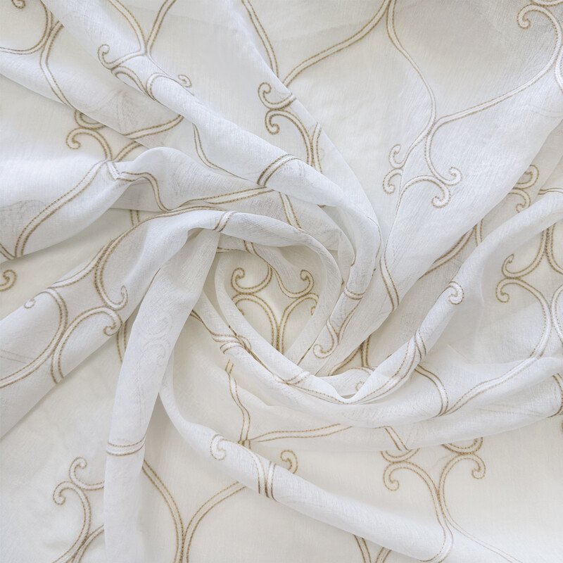 Французская штора тюль шампань, карниз верёвочный